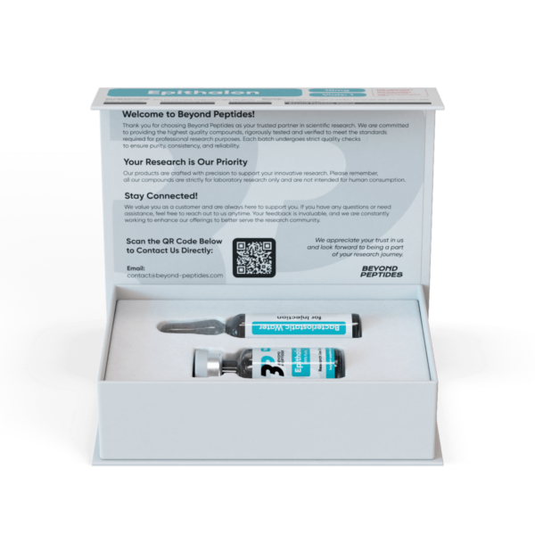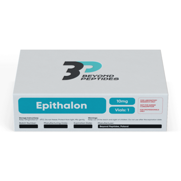 Epithalon peptide is a high-purity tetrapeptide supplied at 10 mg per vial in lyophilized form. This synthetic compound has been extensively explored in cellular biology research, particularly in studies examining telomere-associated mechanisms and cellular senescence pathways. Every batch undergoes HPLC purity testing and ships with a detailed Certificate of Analysis. EPI is designated for laboratory research use only. Beyond Peptides provides this premium-grade research peptide with strict quality control and efficient European delivery.